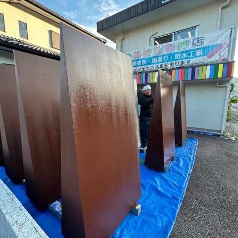会社の前で塗り塗り♬